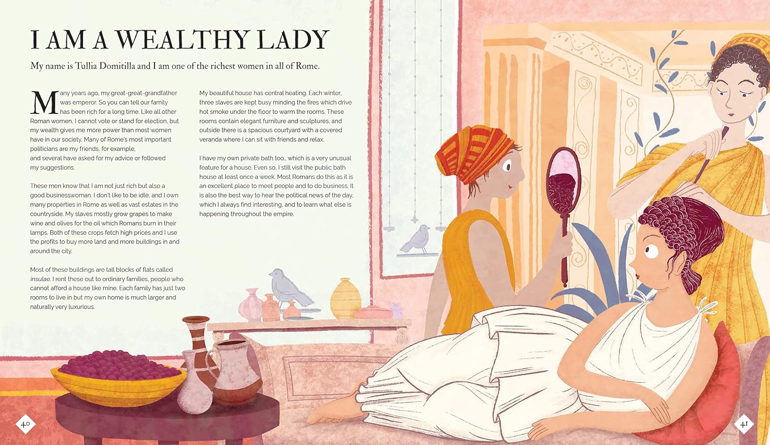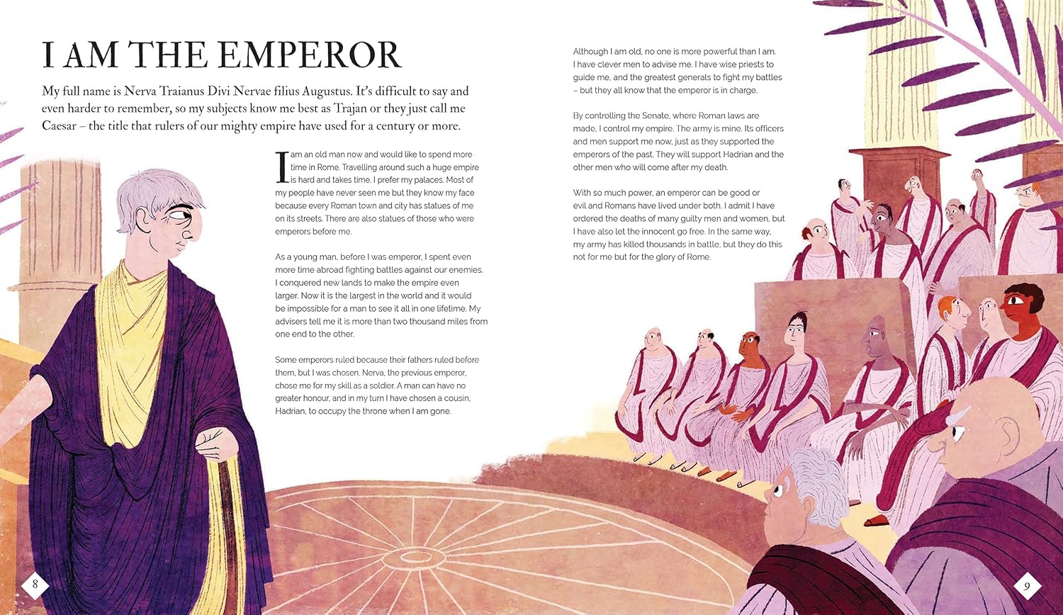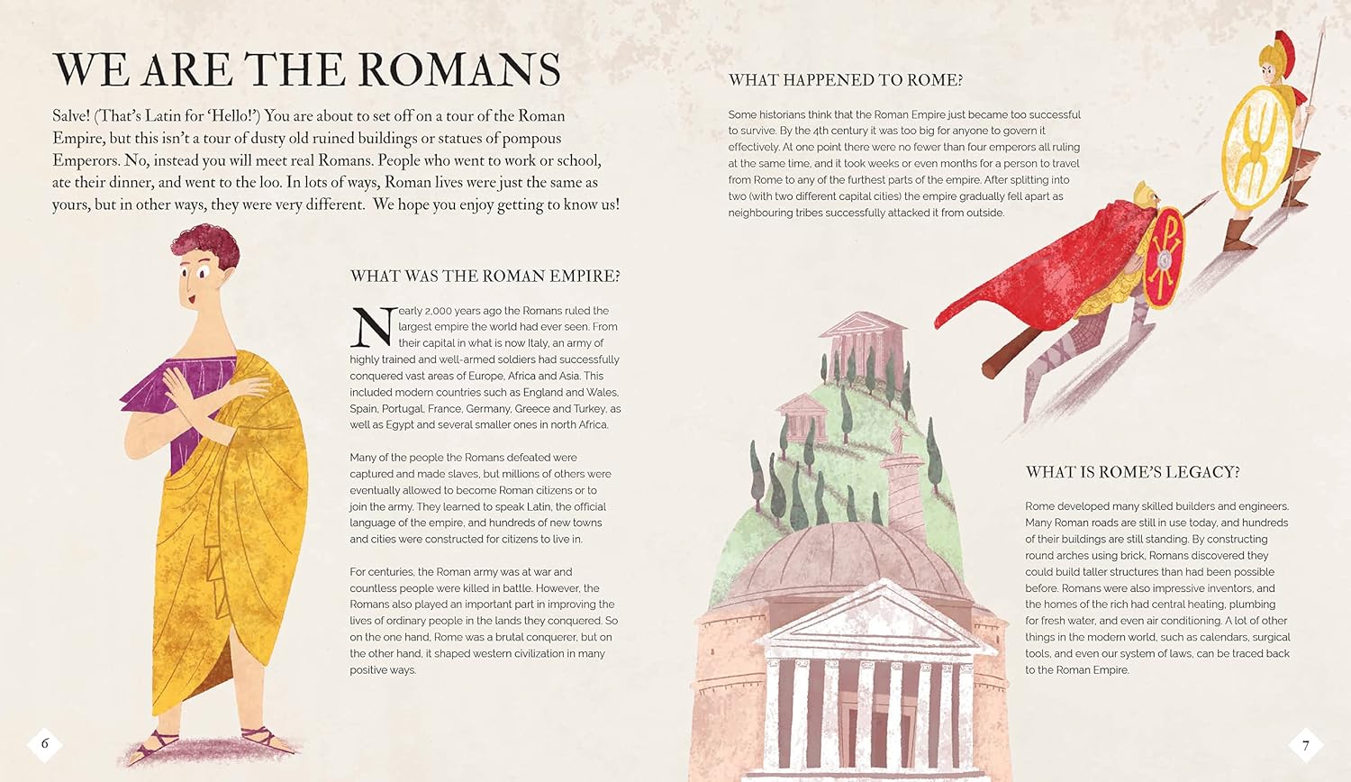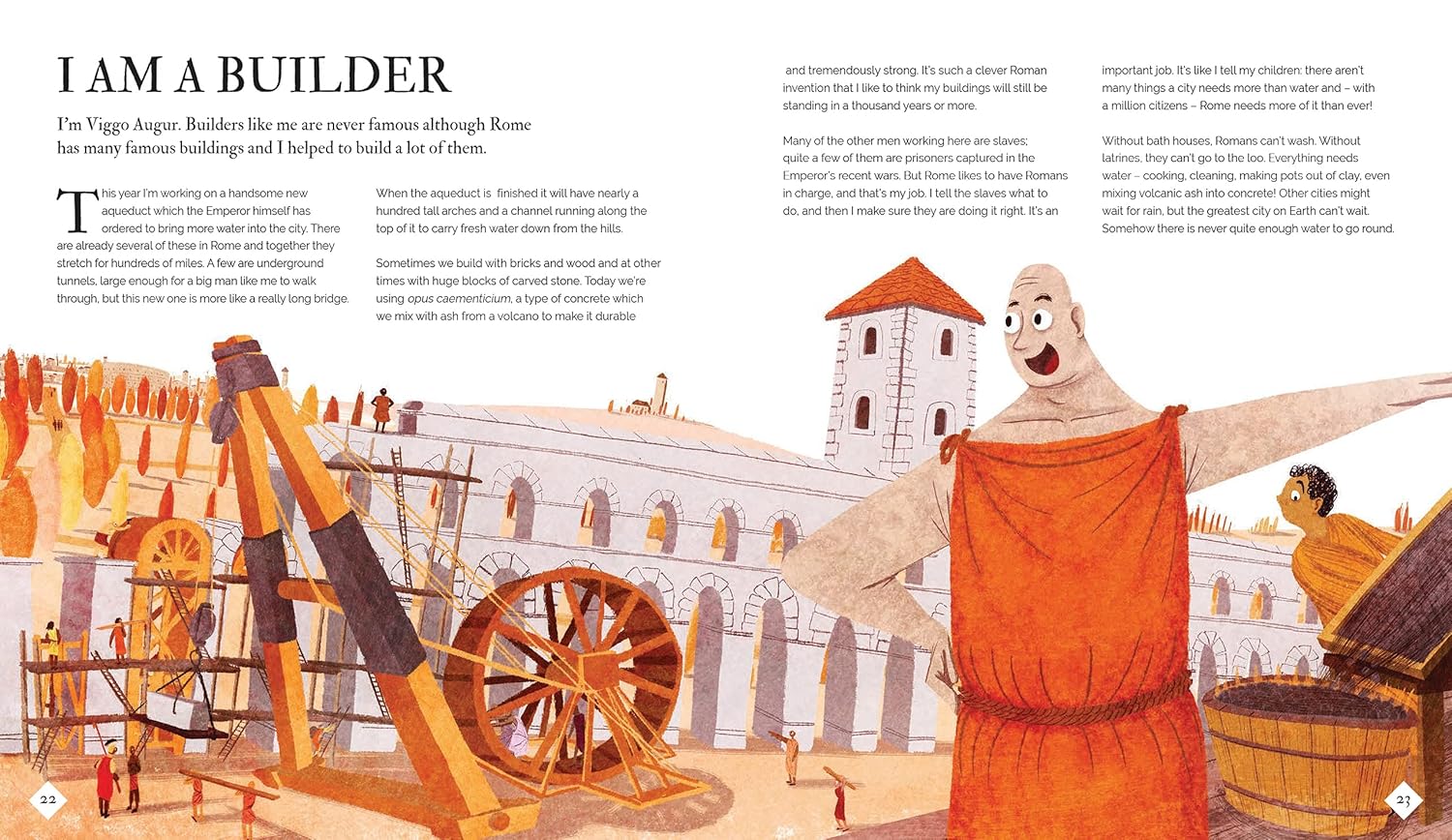 An illustrated guide to the people of Ancient Rome. Step back in time to Ancient Rome and meet some of the many people who lived, worked, and played during that time. From a young slave boy to a fierce gladiator, a washerwoman to a wealthy lady, and a mosaic artist to the emperor himself - each one will share with you the story of their own daily life. Together, they are the Romans. Featuring 19 different characters from Roman times, as well as an introduction to the Roman world, a map of the empire and a timeline of key events, this book provides a new angle on a classic subject, bringing the ancient world to life.